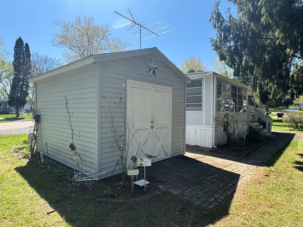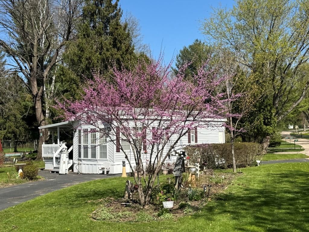 Escape to fun & relaxation in Rock River Leisure Estates! This well-maintained park model is the perfect affordable getaway, featuring full-size appliances, easy-care laminate flooring, a cozy three-season addition & spacious covered porch- Great for morning coffee or evening unwinding. A 10x12 shed offers great storage & the included golf cart makes cruising the community a breeze! Enjoy a beautifully landscaped lot with paved walkways & perennial flower beds. Ideally located next to the tennis courts & just a walk to the fishing pond, pool, playground, country store, basketball and volleyball courts- you're always close to the action. Direct access to the Rock River and quick entry to Lake Koshkonong means endless days of boating, fishing & water fun, plus lakeside dining & live music nearby. Open year-round with lot ownership included- your home base for all-season enjoyment!
