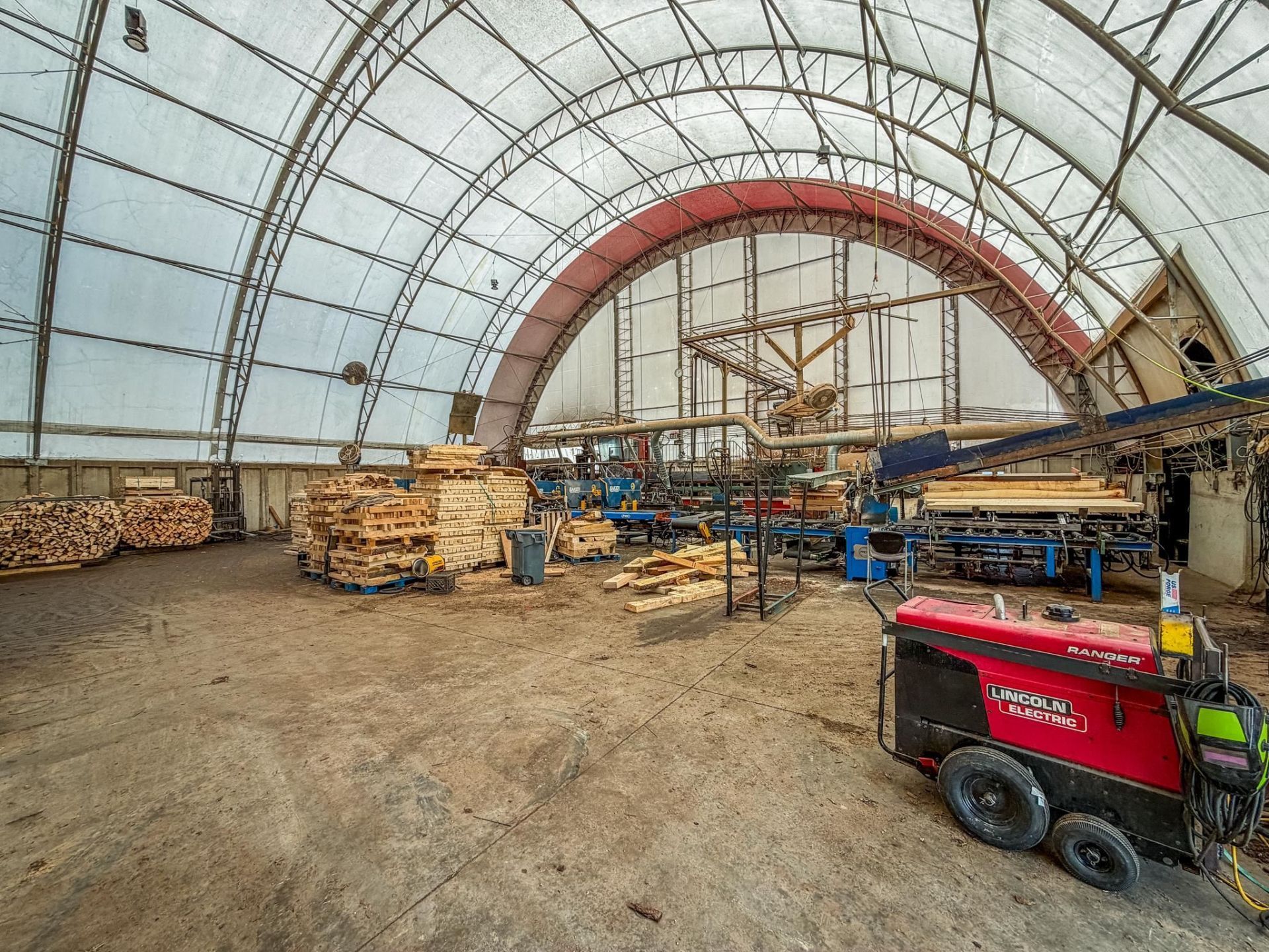 This 42 acre property located near Loganville in Sauk County, offers a combination of operational business infrastructure and open acreage suitable for residential or agricultural use. The property includes a recently constructed sawmill facility built approximately three years ago, along with tillable ground that provides flexibility for future expansion, building, or hobby farming. The sawmill setup is designed for efficiency and functionality, with equipment and layout in place to support ongoing lumber production. The operation is powered by two diesel engines, including a Caterpillar 325-horsepower engine and a recently rebuilt Detroit 300-horsepower engine. These motors run hydraulic pumps that supply power to the mill equipment. Everything is in place and ready to go. Built in 2023, the equipment is fairly new, as is the entire facility, offering a setup with many years of service to come.