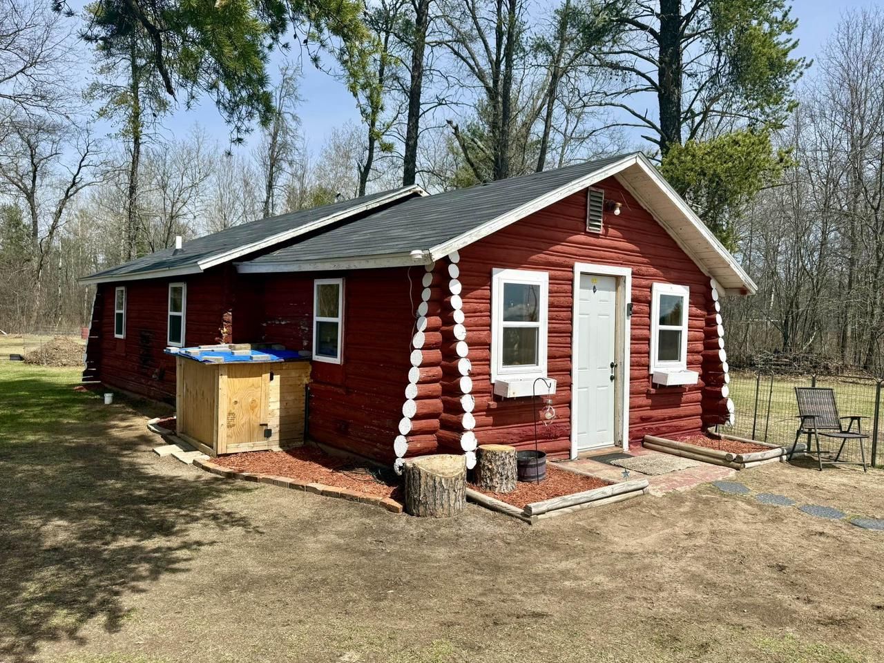 Northwoods log cabin to make your base camp. Septic and sandpoint well installed to give you all the modern amenities in a small space. Full kitchen set up with appliances and bathroom area includes new shower and toilet with room to finish out to complete as a full bath. New roof in 2024. Storage shed and backyard with firepit area add to your outdoor adventure.